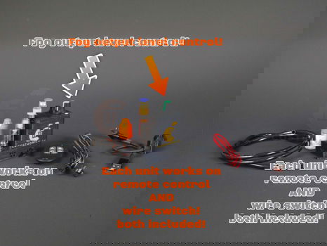 - Complete with remote control AND wire toggle switch (1 meter wire)